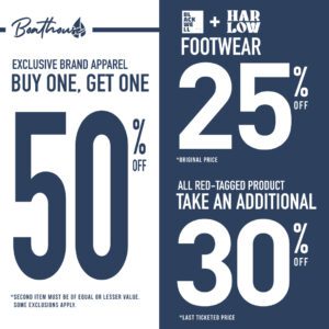 EXCLUSIVE BRAND APPAREL BUY ONE. GET ONE 50% OFF
