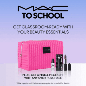 Gift includes: Pink Quilted Makeup Pouch Macximal Matte Lipstick – Stone (full size) MACStack Mascara Deluxe Sample Fix+ Deluxe Sample (4ml)