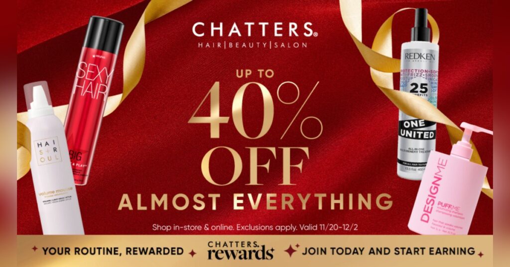 Shop up to 40% almost everything at Chatters! 🛒✨