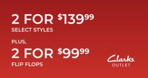 Clarks is bringing you freedom-worthy footwear. Enjoy 2 for $139.99 select styles and grab 2 pairs of flip flops for just $99.99. Step into summer with unbeatable comfort and style!